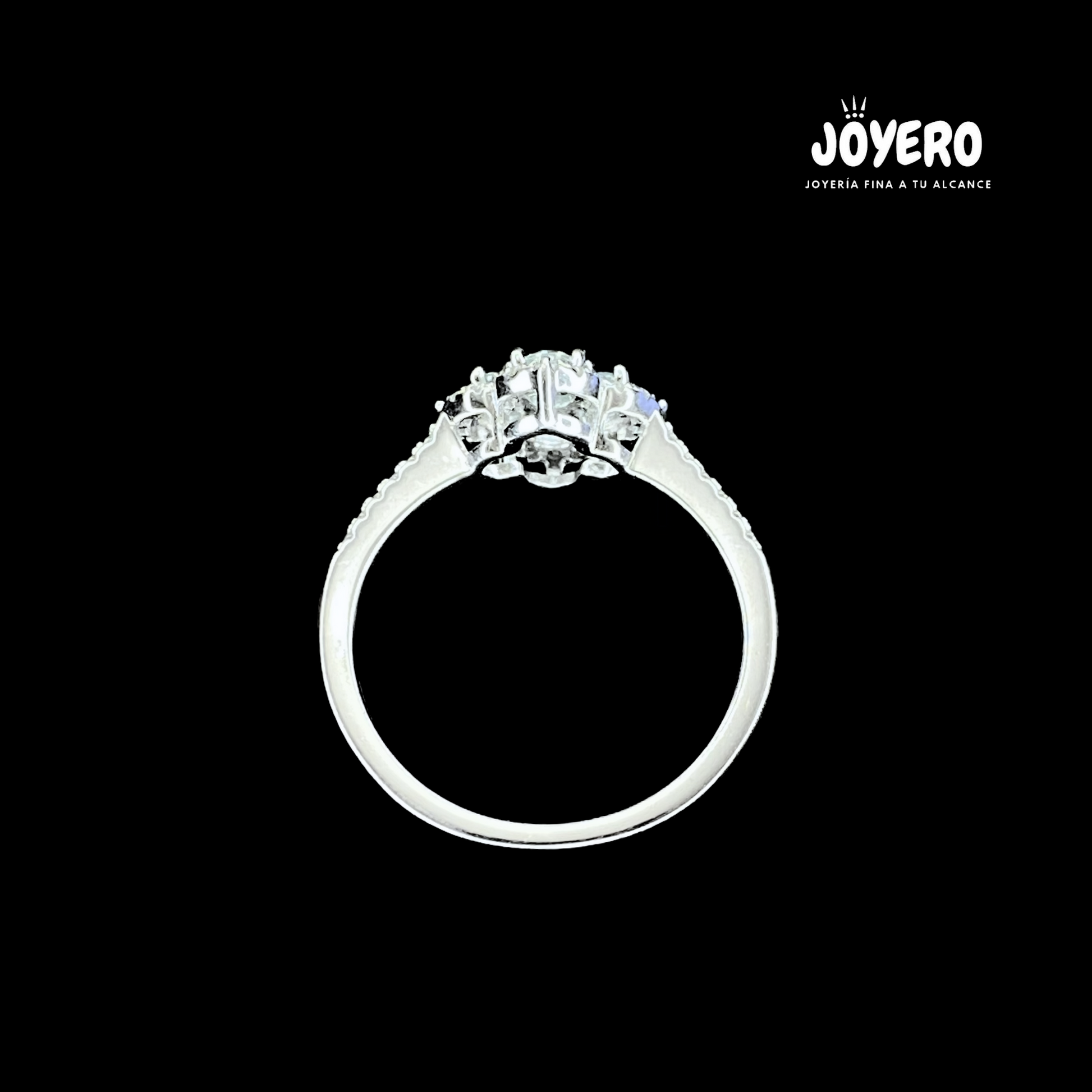 Anillo flor de moissanitas en corte redondo engarzadas en plata fina 925.